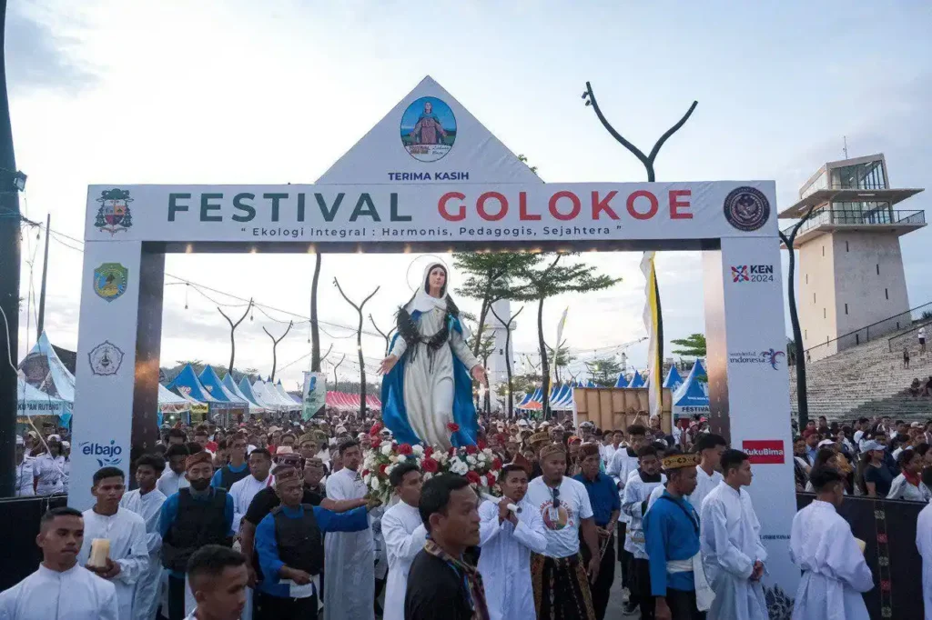 In the same region, the Golo Koe Festival stands out for its spiritual significance. Centered on the procession of the Bunda Maria Assumpta Nusantara Golo Koe statue, it draws thousands of Catholic devotees who wear traditional Manggarai attire—songke skirts, white shirts, and woven shawls. The statue travels by pinisi boat from Marina Waterfront Harbor to the sacred Golo Koe Cave, seven kilometers away, symbolizing both faith and maritime heritage.