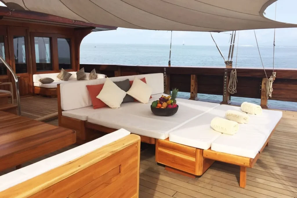 Aboard Lamima, every detail has been meticulously crafted to ensure your comfort and relaxation. The yacht features 7 luxurious cabins, accommodating up to 14 guests, ensuring plenty of space for an intimate yet luxurious experience. Whether you’re socializing in the elegant saloon, dining on the main deck, or unwinding in the spa on board, Lamima is designed for absolute relaxation. You can enjoy a rejuvenating session on the yoga deck or bask in the sun on the spacious sun deck. With its premium facilities and the stunning backdrop of Komodo, Lamima offers a perfect blend of luxury and adventure, making every moment aboard unforgettable.